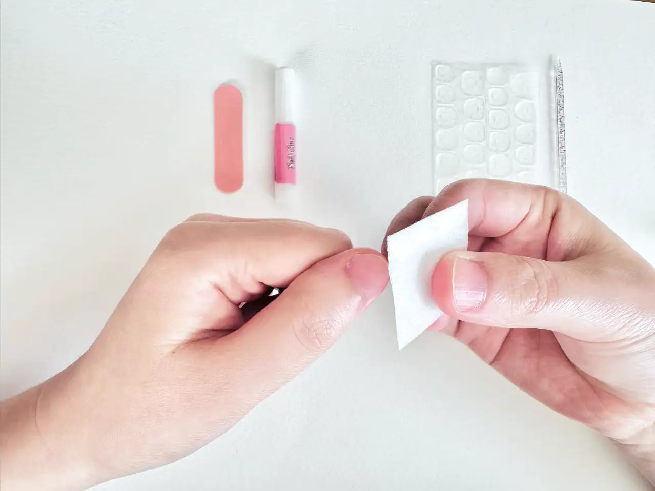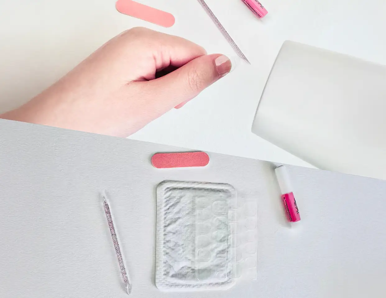 Push the Bubbles Out: Use the manicure stick (wooden or plastic) provided in your kit to press the adhesive tab completely flat. Removing air bubbles ensures maximum adhesion and longer wear time.