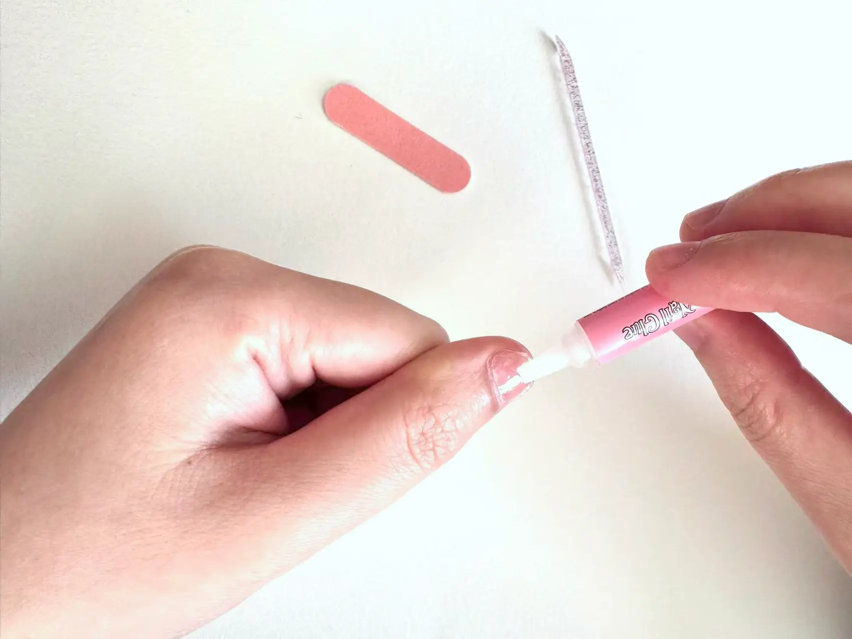The Hybrid Method: For extended wear (up to 2+ weeks), apply one small drop of glue on top of the adhesive tab. The tab acts as a protective barrier, preventing direct contact between the glue and your natural nail for a much safer and gentler experience.