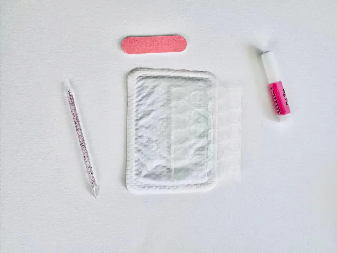 • Application: Apply the nail at a 45-degree angle, sliding it down to the cuticle line. Press down firmly for 30 seconds.