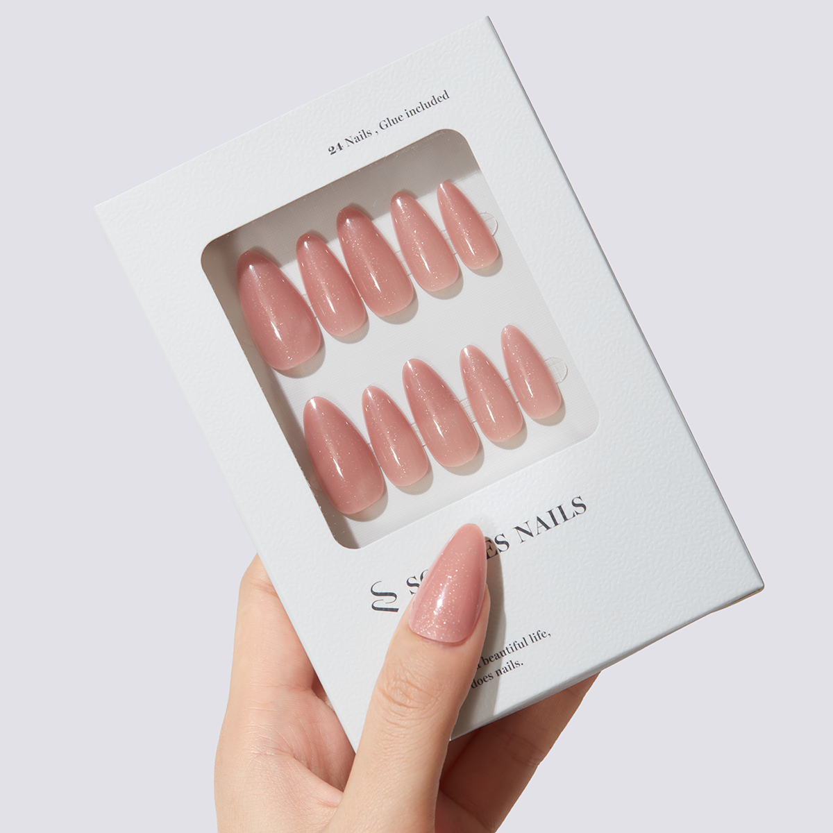 Nail Glue — Apply glue to both your natural nail and the press-on nail. Press and hold for 10–15 seconds.